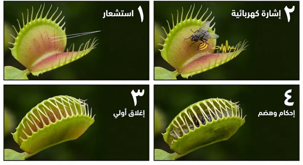 معلومة علمية: أثبتت دراسة نُشرت في مجلة Current Biology عام 2023 أن نباتات فينوس تستطيع “عد” لمسات الحشرة. بعد خمس لمسات، يصل إنتاج الإنزيمات إلى ذروته.